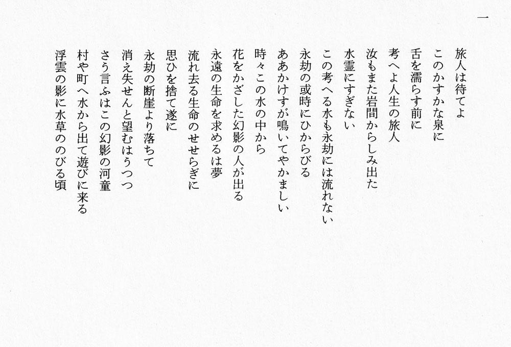 関口憲二の“光陰謳歌”76 2024.05.232026.02.24最新の投稿2026.02.24詩句を読む旅人かへらず_一(西脇順三郎)詩集『旅人かへらず』/「西脇順三郎詩集」(岩波文庫)2026.02.23えこりんのメダカビオトープメダカ池をつくる_20262026-02-04ベランダで大変なことが起きていた。メダカのタライ池が水漏れしている。水はだいぶ残っていたので慌てることはなかったけれど、このままにしておくこ...2026.02.18写真俳句墓石に・・・墓石に 蝶とまりきて 波しずかAyumi.Iいいですね。静と静が、きれいに重なっています。 蝶は生の象徴、墓石は死の象徴。その間に波音があるはずなのに「しずか」...【気ままに心字池】心字池雑記、WordPress、Mac・iPad、【7階のオアシス】グリーンライフ、テラスの“Skyart”、小さな訪問者【えこりんのメダカビオトープ】ベランダビオトープ、室内水槽、メダカ、水草、石巻貝、産卵床【旅の気分で(写真散歩)】南流山ぐるり写真散歩、少し遠くへ、古き旅の栞&絵はがき関口憲二の“Photo Poem Ttrunk”趣味の個人ブログです。〜 AIと写真を語る、写真俳句、詩句を読む 〜